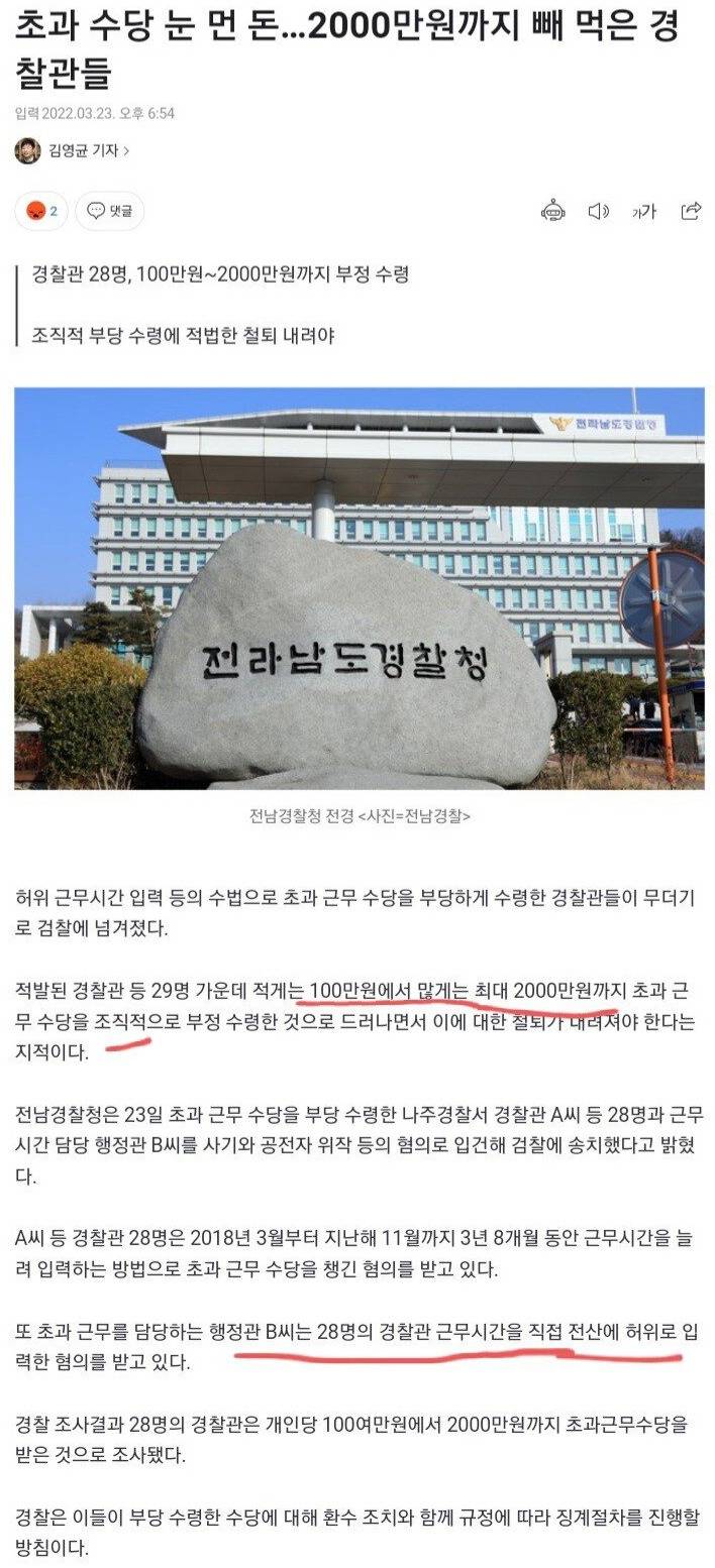 초과수당 알뜰하게 빼먹은 경찰들