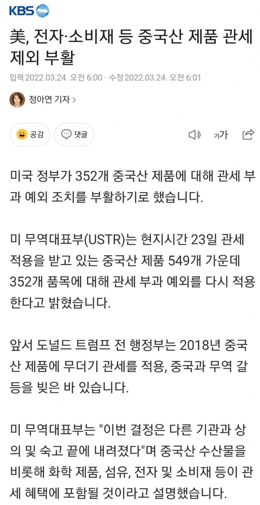 결국 중국산 관세 부과 철회